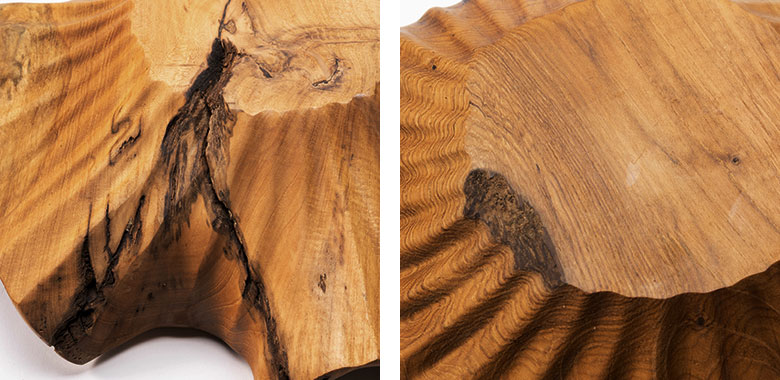 一枚のチーク材から彫り出しているので、継ぎ目がない美しい仕上がり。 |