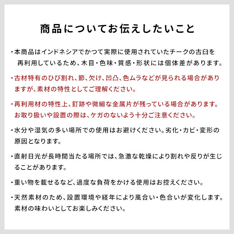 素材:チーク材(古木・無垢材)