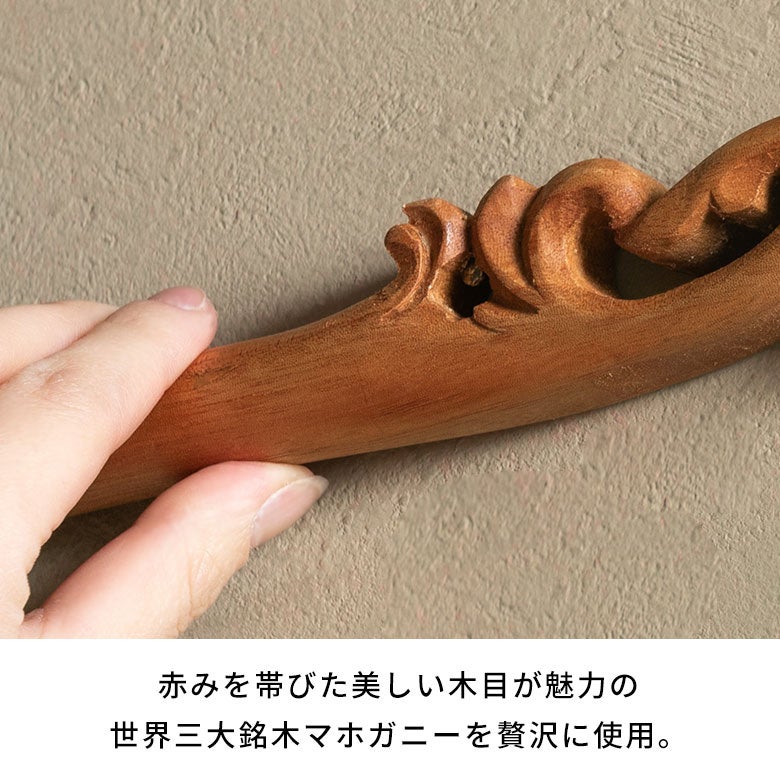 ・世界三大銘木として知られるマホガニー無垢材を使用し、天然木ならではの高級感と温もりを演出