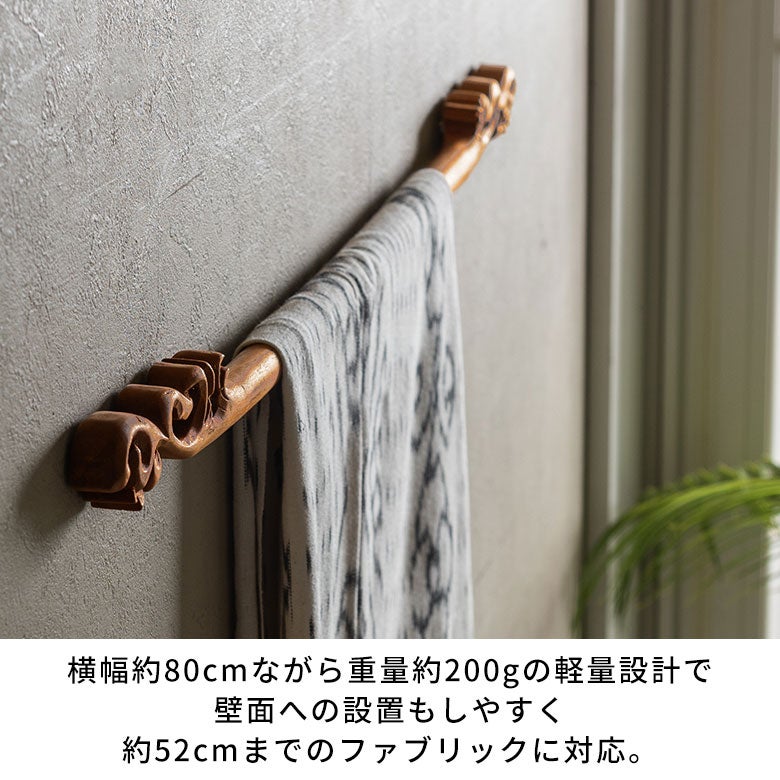 サッと美しく掛けられるバータイプで、約52cmまでのファブリックに対応。幅が大きい場合は、折り畳んで掛けるアレンジもおすすめです。