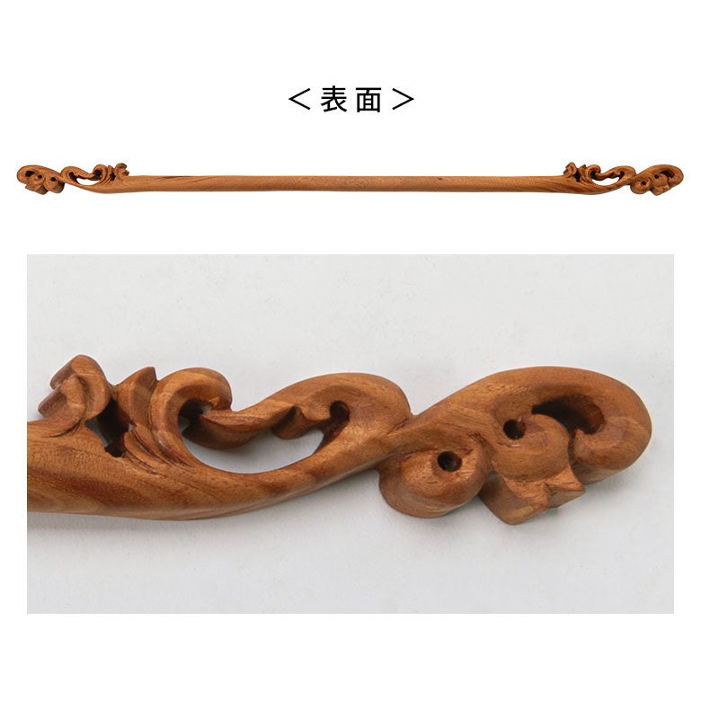 左右に広がる彫刻の美しさが際立つデザインは、壁面をすっきりと引き締めながら、空間に穏やかなリズムを添えます。機械彫刻では決して表現できない、手仕事ならではの温もりと立体感が、空間に上質な存在感を添えます。