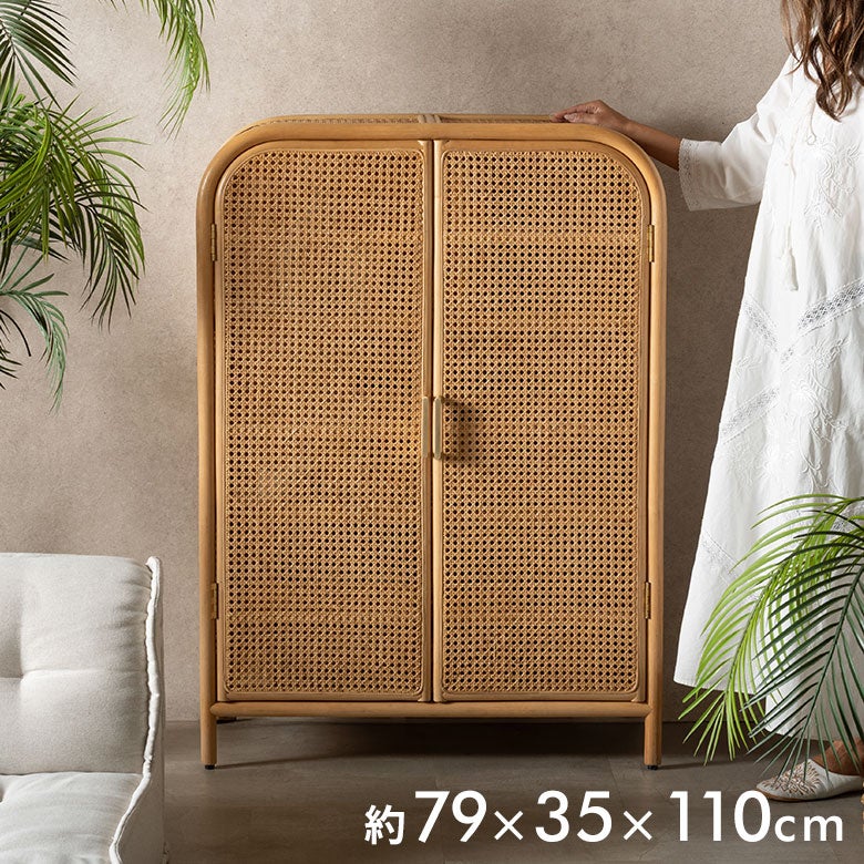 インドネシアで確立された製法により仕上げられ、軽量・通気性・耐久性という、ラタン素材ならではの魅力を最大限に活かした設計。見た目の美しさだけでなく、両開き扉と3段の収納スペースで日常使いにも優れた実用性を備えています。