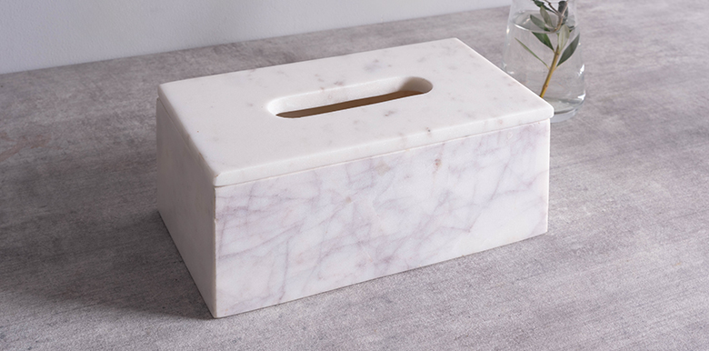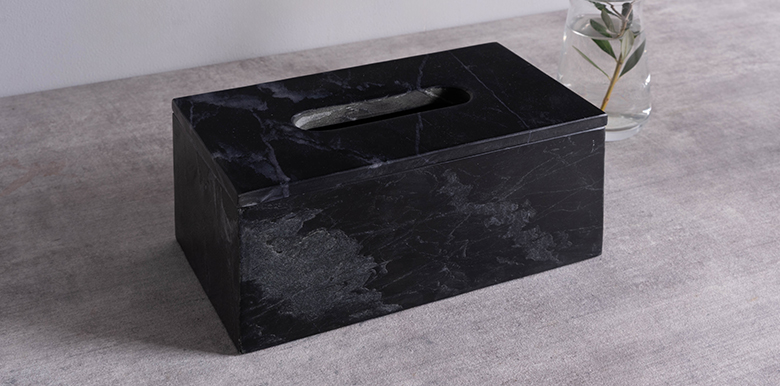 ・上質な天然大理石を贅沢に使用した、重厚感ある長方形のティッシュケース