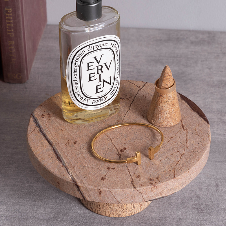 置くだけで、生活感をすっと抑え、まるで海外のラグジュアリーホテルのような佇まいに。無駄な装飾を省いたミニマルなデザインが、大理石そのものの美しさを際立たせ、アクセサリーや小物、インテリアアイテムを上品に引き立てます。