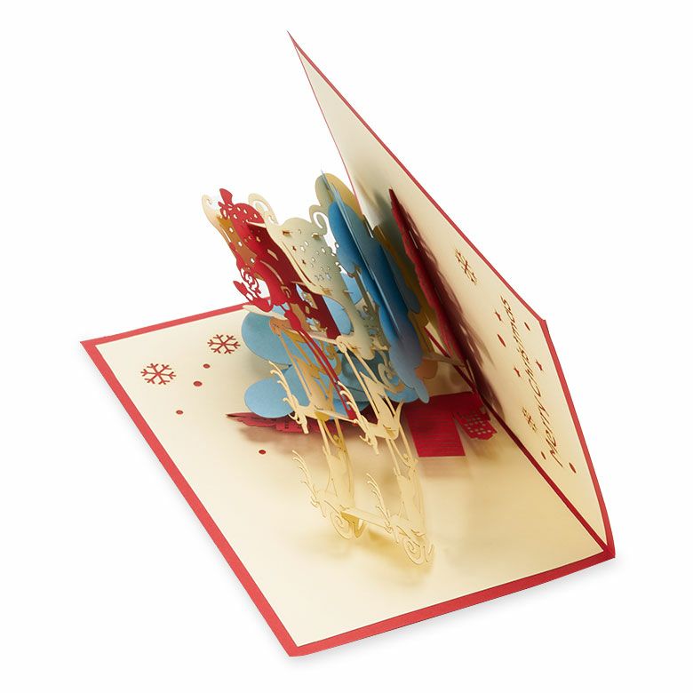 ・トナカイのそりに乗ったサンタクロースが飛び出す、開いて楽しい立体ポップアップのクリスマスカード