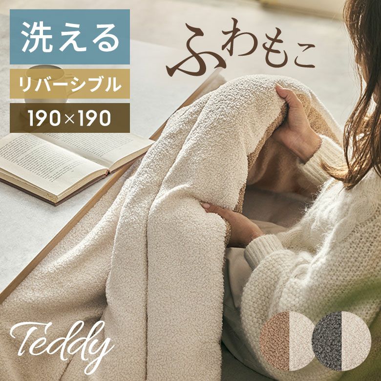 Teddyシリーズは、洗えるブークレ素材のリバーシブルこたつ布団。