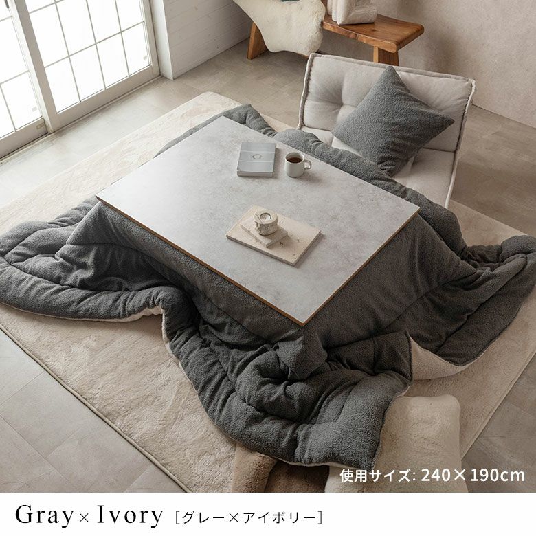 → 190×190cmは、80×80cm前後の正方形こたつに対応しています。