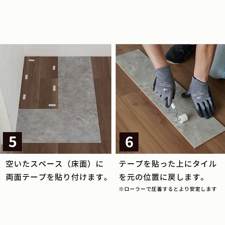 テープを貼った上にタイルを元の位置に戻します。※ローラーで圧着するとより安定します |