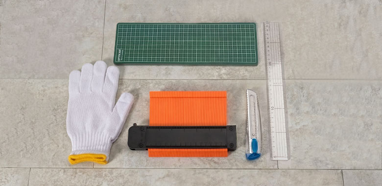 フロアタイルを敷きたい場所に型取りゲージを押し当てるだけ。 柱の出っ張りやドア枠の凹凸などの形をそのまま写し取り、 そのラインに沿ってタイルをカットすれば、隙間なくぴったりフィットします。 複雑な部分のカットも迷わず進められるので、フロアタイル施工の強い味方です。