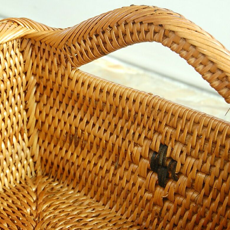 | バリ島の職人さんが丁寧にアタを編み込んで作り上げたハンドメイドのあたたかみ溢れるバスケット。細かい編み目が美しく、また軽くて丈夫なのも使いやすいポイントです。ダイヤのような柄はアタを着色しているのではなく、アタの黒い根の部分を使用して編み込まれており、バリニーズの感性がキラリ。コンパクトなサイズで見た目にも可愛らしく、アイデア次第で色々な用途に使えそうですね♪ | |||||