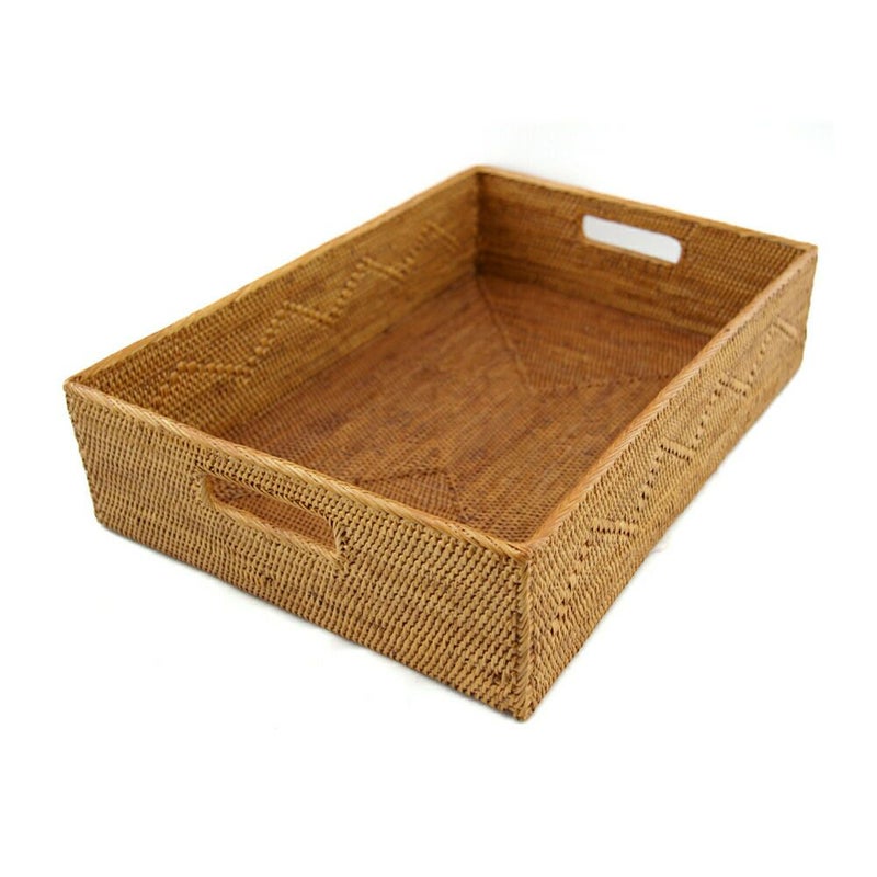 アタで編まれた、少し大きな取っ手付きバスケット。
