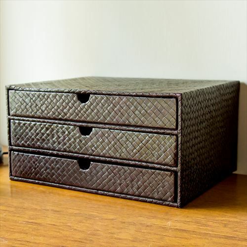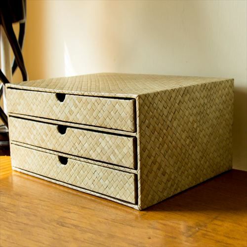 天然素材パンダンの卓上3段チェスト