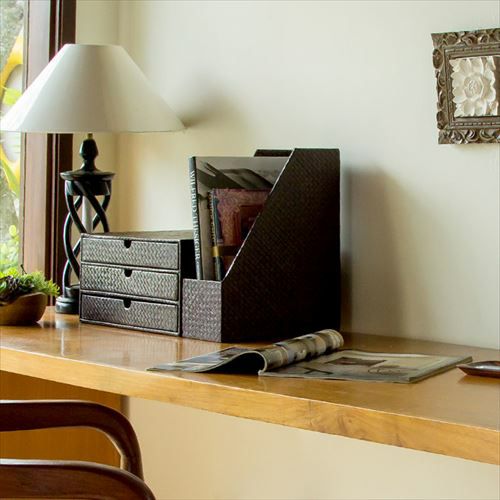 無機質になりがちなデスクもパンダン製品で統一すればリゾート空間に。
