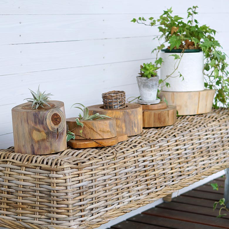 天然木そのままの、ぬくもり感じるチークウッドの飾り台。