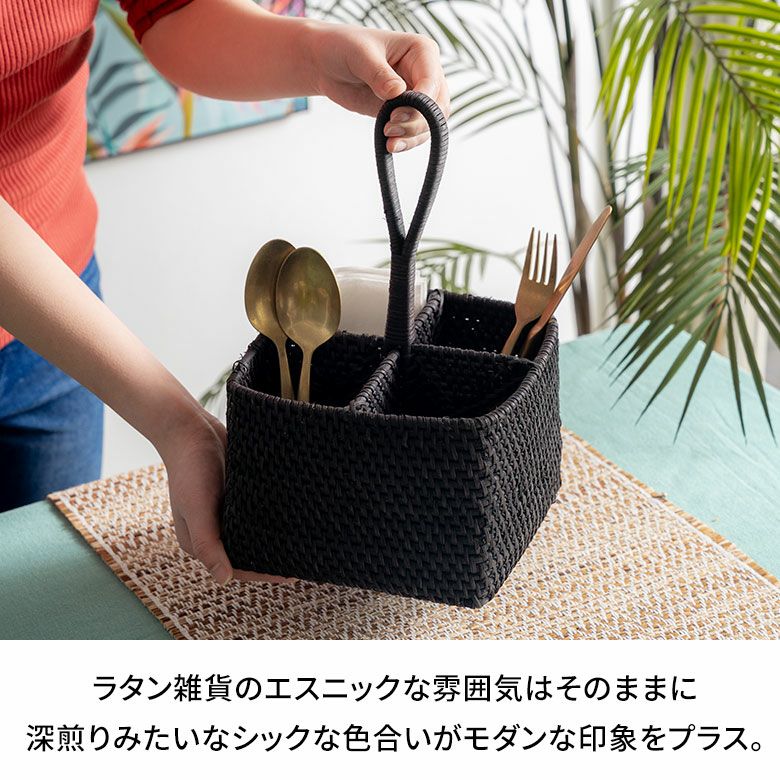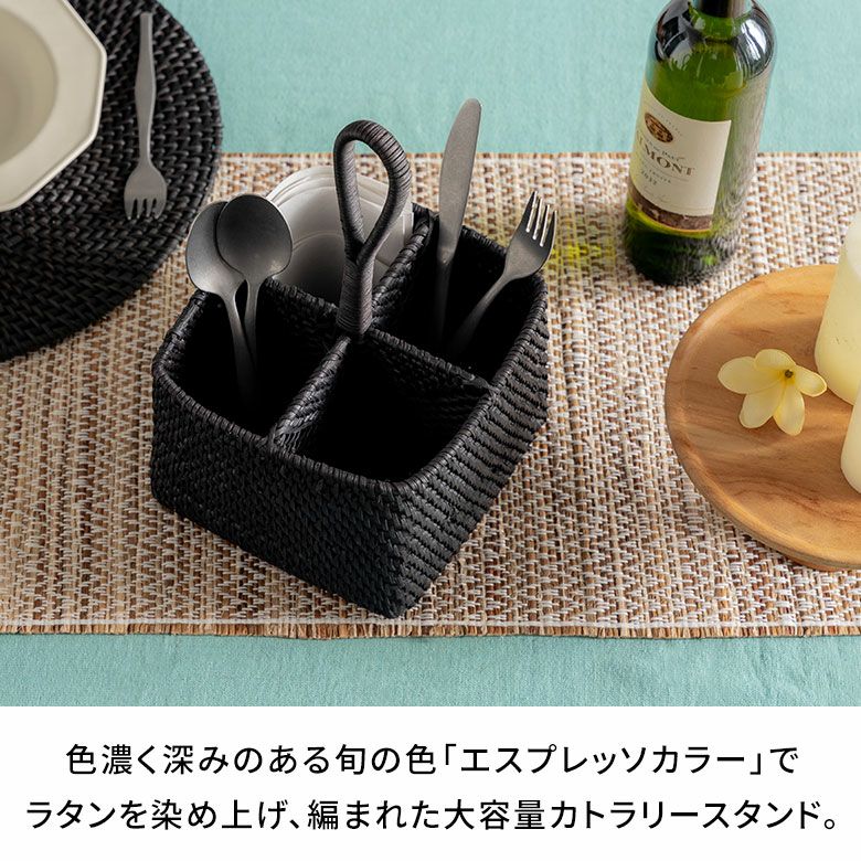 ラタンを染め上げ、編まれた大容量カトラリースタンド。