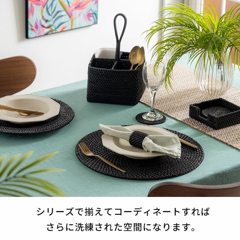 洗練されたテーブルコーディネートを作る、エスプレッソブラックカラーのラタンアイテム。