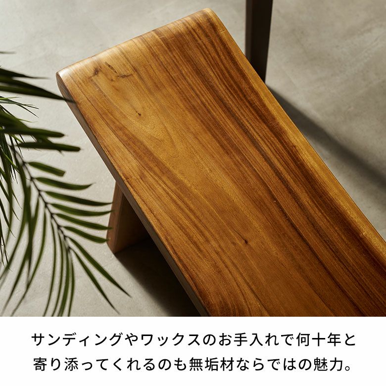 直線的で飽きのこないデザインとワックスフィニッシュ仕上げが、空間にナチュラルな温かみを添えてくれます。経年変化を楽しみながら長く使える一脚です。