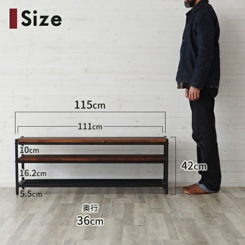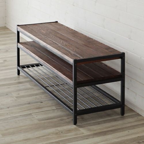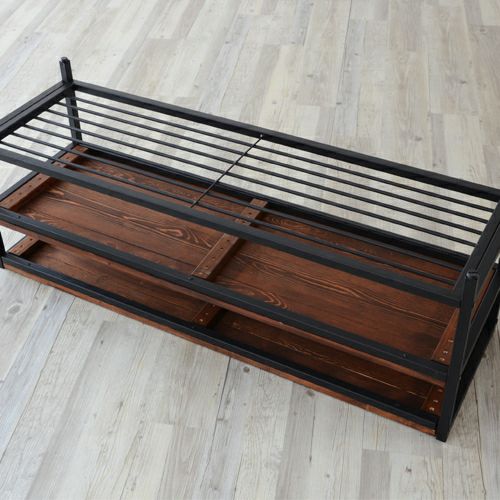 コーヒーブラウンの木部とブラックアイアンの脚が