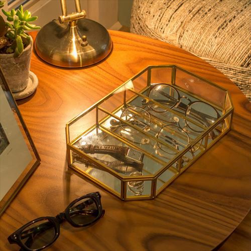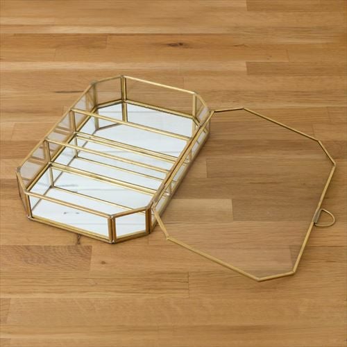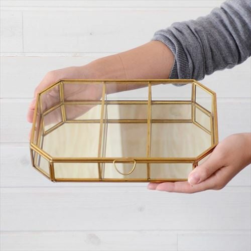 ゴールドとクリアガラスの組み合わせが上品で落ち着いた印象のジュエリーケース。