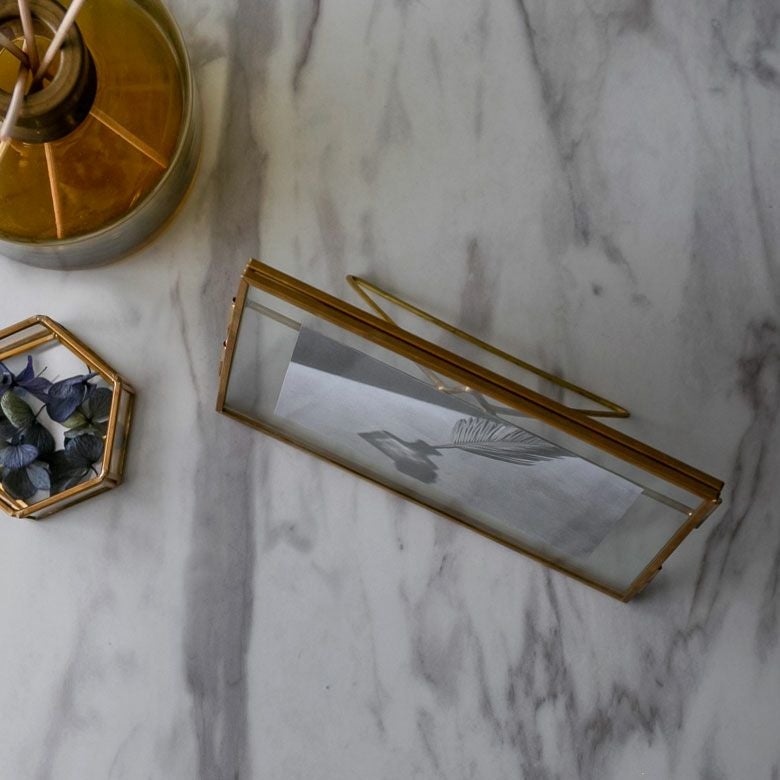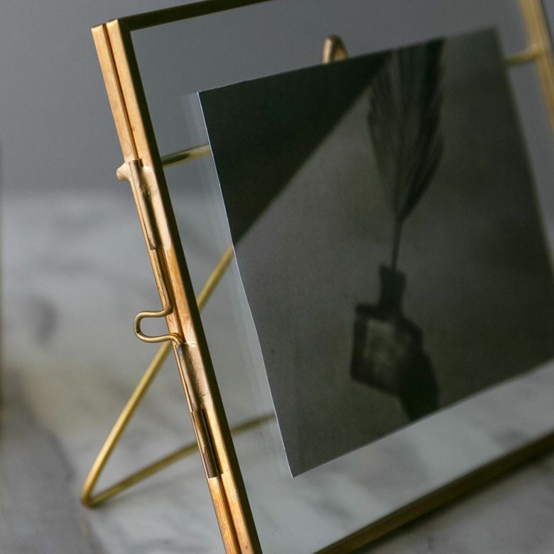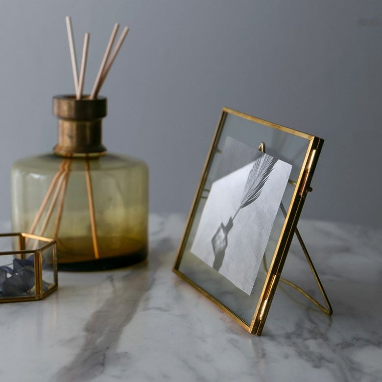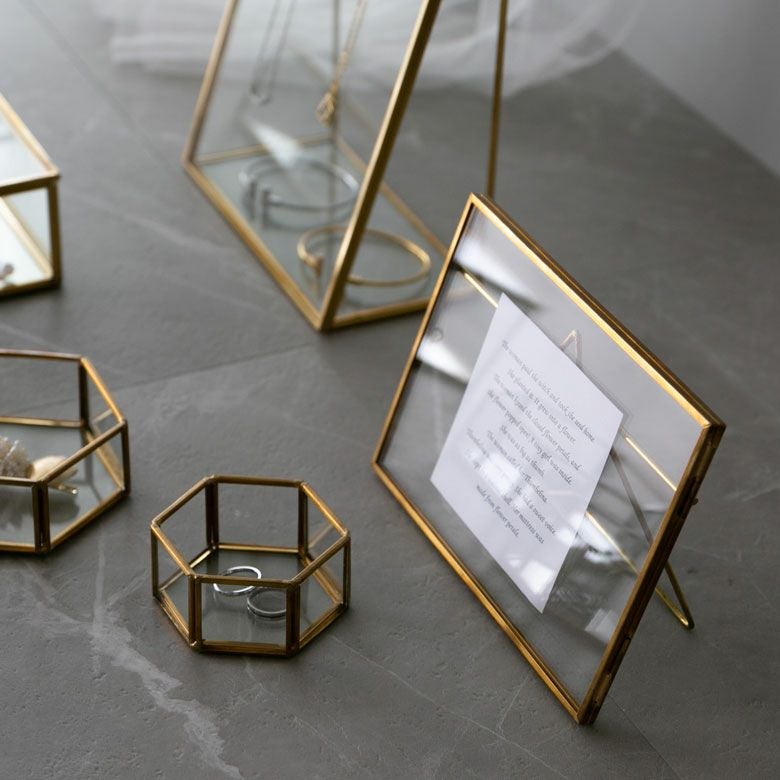 落ち着いたゴールドの真鍮フレームとガラスでできた