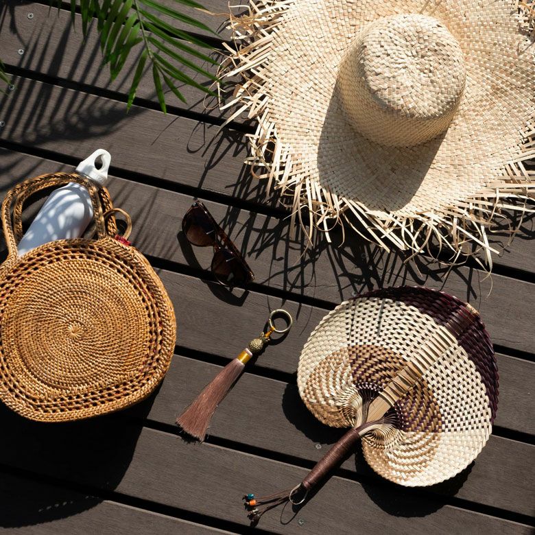 ロンタル椰子は手編みバッグやコースターなどに使われる、