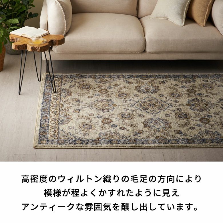 高密度ウィルトン織りの魅力を活かし、かすれたようなアンティーク感を表現。