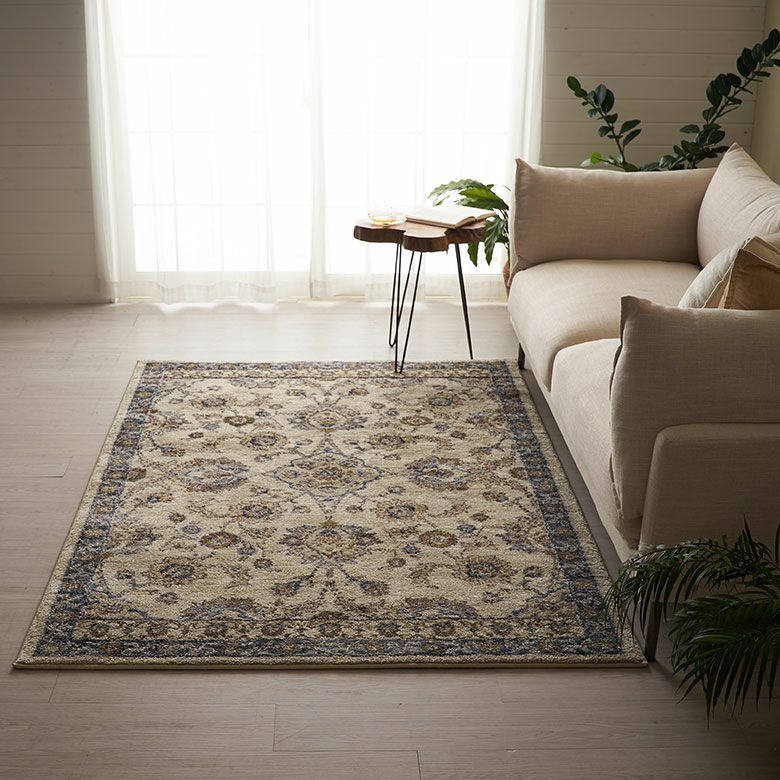 エキゾチックな花柄が華やかにお部屋を彩る、ペルシャ絨毯風のデザインラグ。