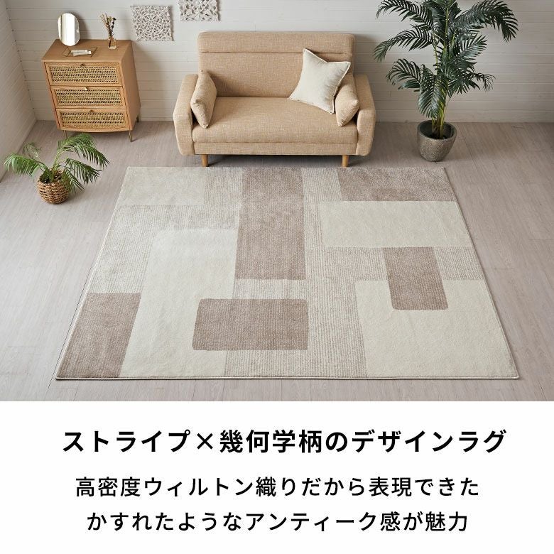 ストライプ×幾何学柄 デザインラグ