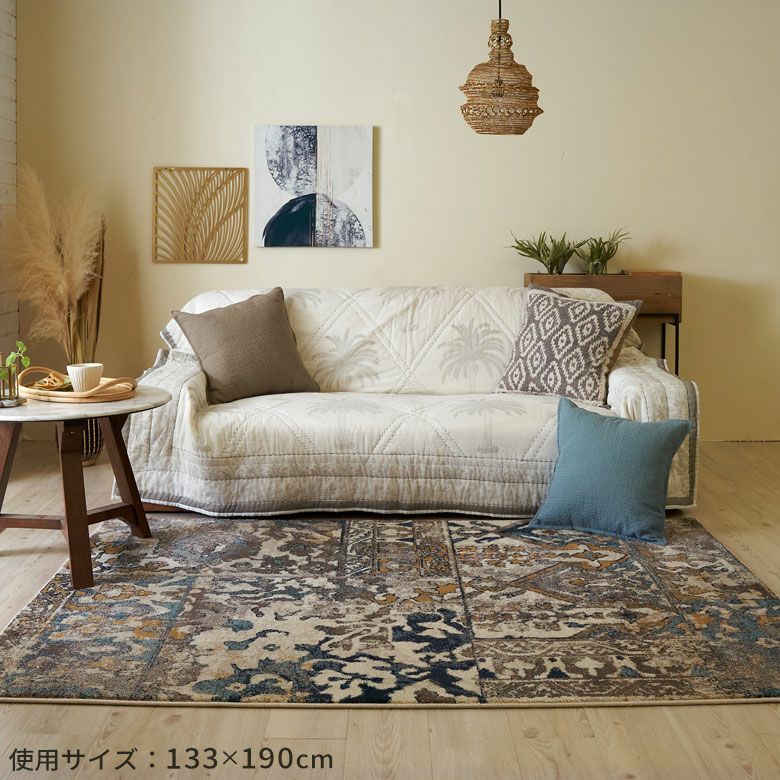 ホットカーペット 床暖房 可 エジプトラグ デザインラグ 約 1.5畳 敷物 エキゾチック 模様 ベッドルーム ヴィンテージ風 模様替え ワンルーム 新生活 アンティーク風 オリエンタル ラグ ラグマット ウィルトン織 フラワー 花柄 花 エジプト製 約 130×190cm 長方形 約 W 133cm D 190cm H 1cm 絨毯 マット カーペット ペルシャ ペルシャ絨毯風 ペルシャ風 オールシーズン 春 夏 秋 冬 リビング 寝室 おしゃれ 北欧 リゾート インテリア アジアン [eg84269]