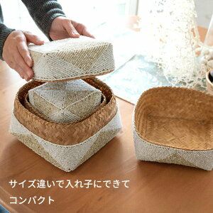 バリ島のトレイ&トレー 新生活 蓋がメッシュになったアタ製小物入れケース[10313]【小物入れ 収納バスケット 籠 カゴ バスケット ふた付き アジアン雑貨 インテリア おしゃれ ナチュラル フタ付き 収納ボックス 蓋付き エスニック 収納カゴ 収納かご バリ雑貨 リゾート バリ島 アタ製品】
