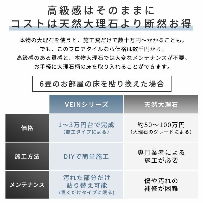 お手軽に大理石柄の床を取り入れることができます。