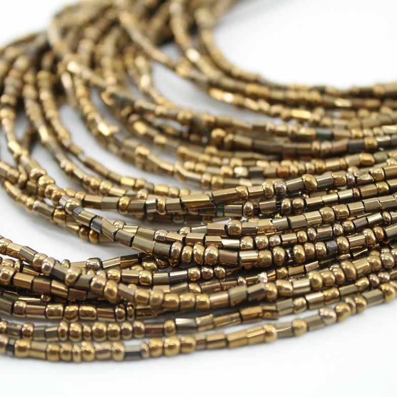 ゴールドビーズは落ち着いたアンティークカラーで、コーディネートにも馴染みやすいカラーリングです。