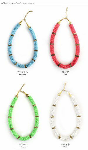 ビビッドなカラーリングが可愛いビーズで出来たネックレス。