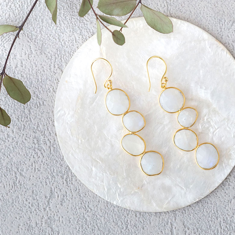 真鍮のフレームにはめ込んだレインボーストーンは、
