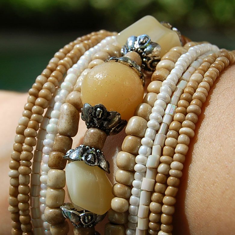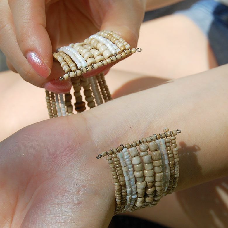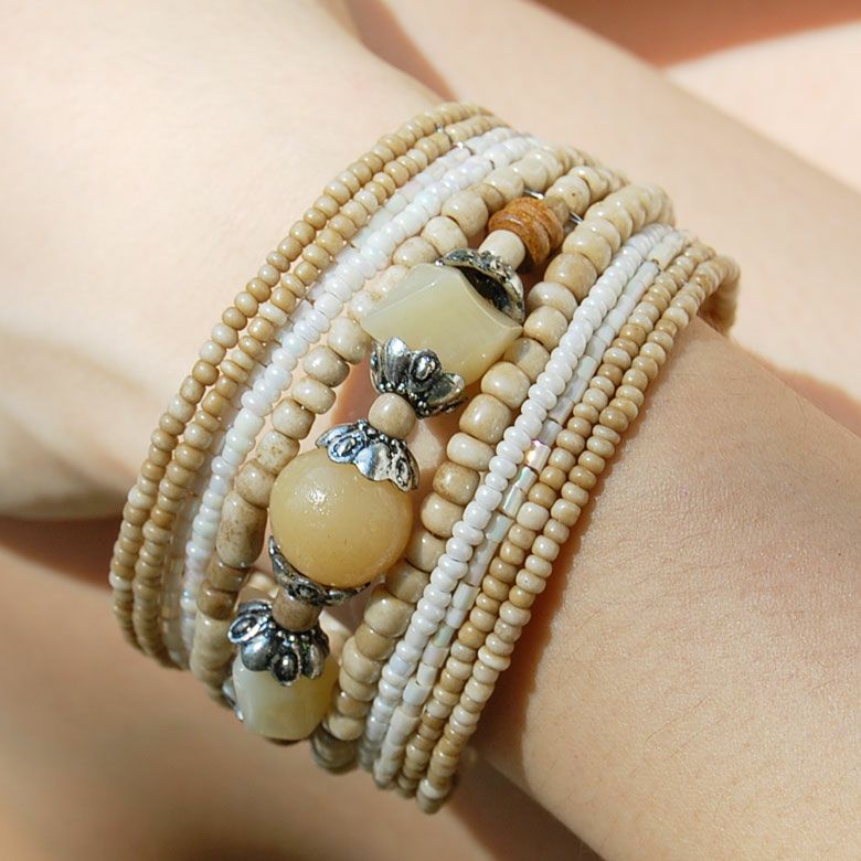 | バリ島の職人がひとつひとつ丁寧に作り上げたバングルは、中央に並んだ大きめのストーンとビーズがインパクト大でかわいいですね。統一感のある色合いの中にもアクセントのきいたバングルに仕上がっています。これ一つで腕をオシャレに見せてくれ、重ね付け不要な存在感があります。簡単に着脱できるのもうれしいですね。アジアンなワンピースやTシャツなどに合わせてオシャレを楽しみましょう♪ | ||||