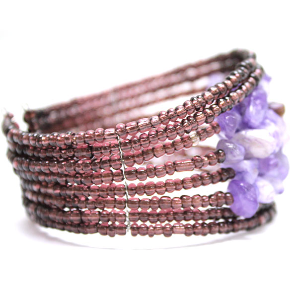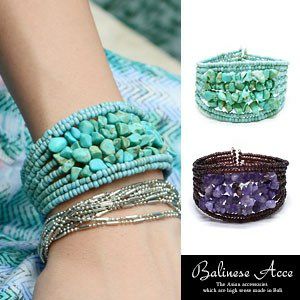 ストーンとビーズを組み合せた涼しげなバングルは、存在感溢れるボリューミーなデザインが◎!