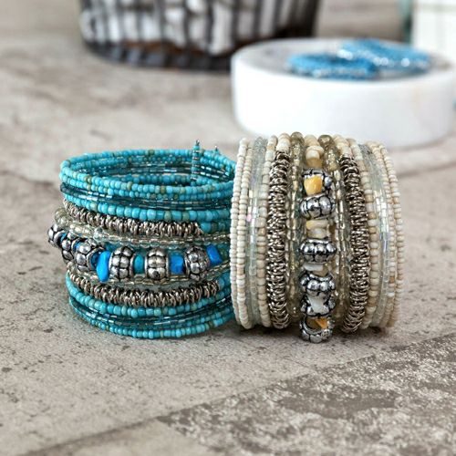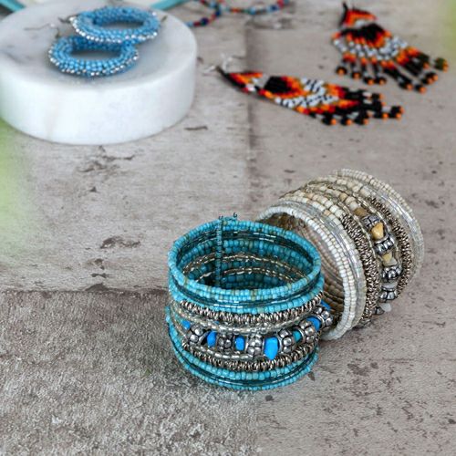 カラフルビーズのワイドバングル