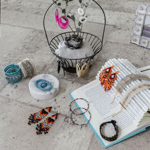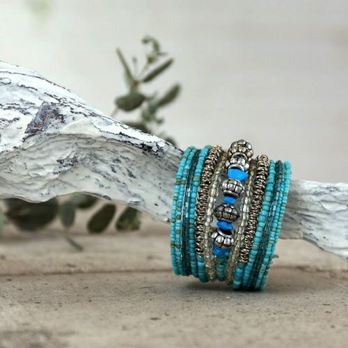 ビーズとカラーストーンのバランスが絶妙なデザイン。
