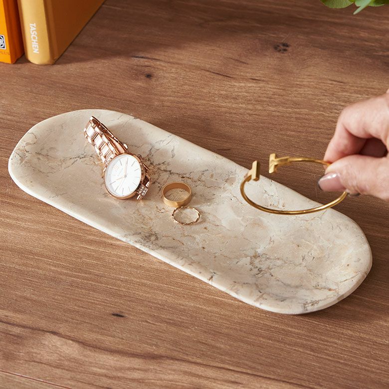 高級感ある大理石のトレイは、モダンな空間に調和します。