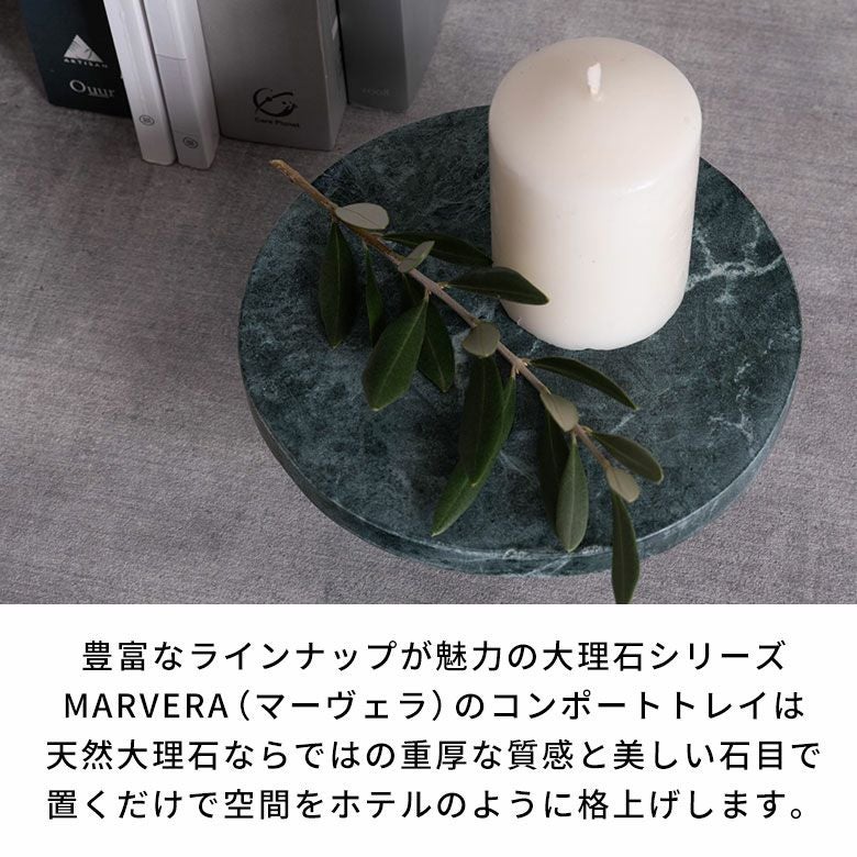 豊富なラインナップが魅力の大理石シリーズのMARVERA(マーヴェラ)のコンポートトレイ。世界有数の大理石産地として知られるインドの天然大理石を贅沢に使用し、熟練職人がひとつひとつ丁寧に手作業で仕上げています。素材本来の重厚感や温もり、そして自然が生み出す唯一無二の美しい表情を引き立てています。