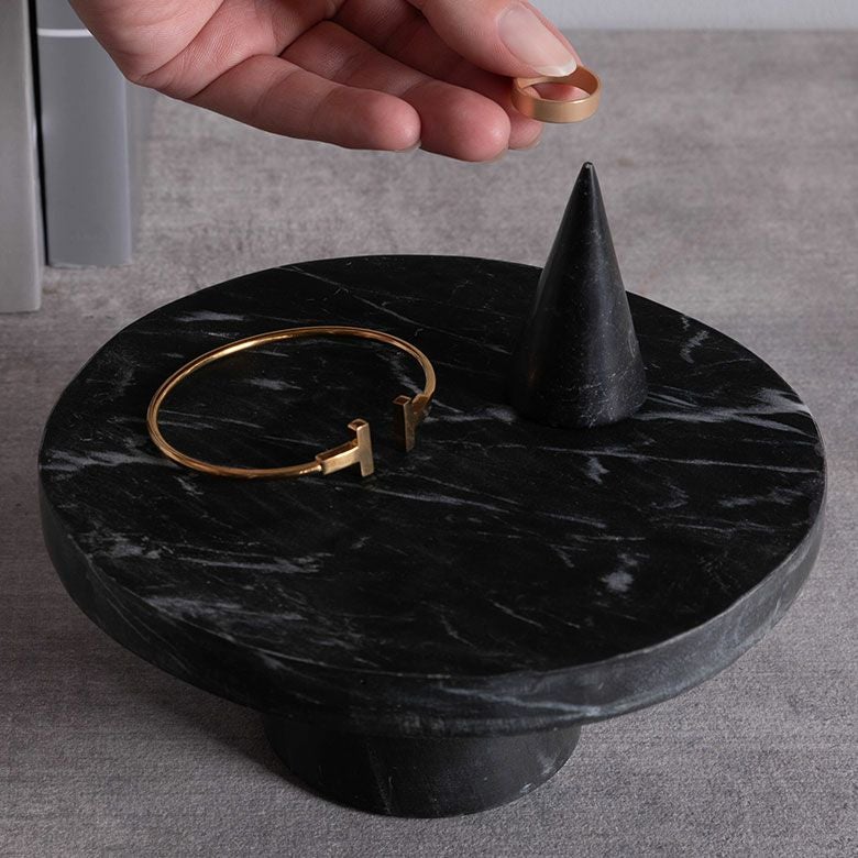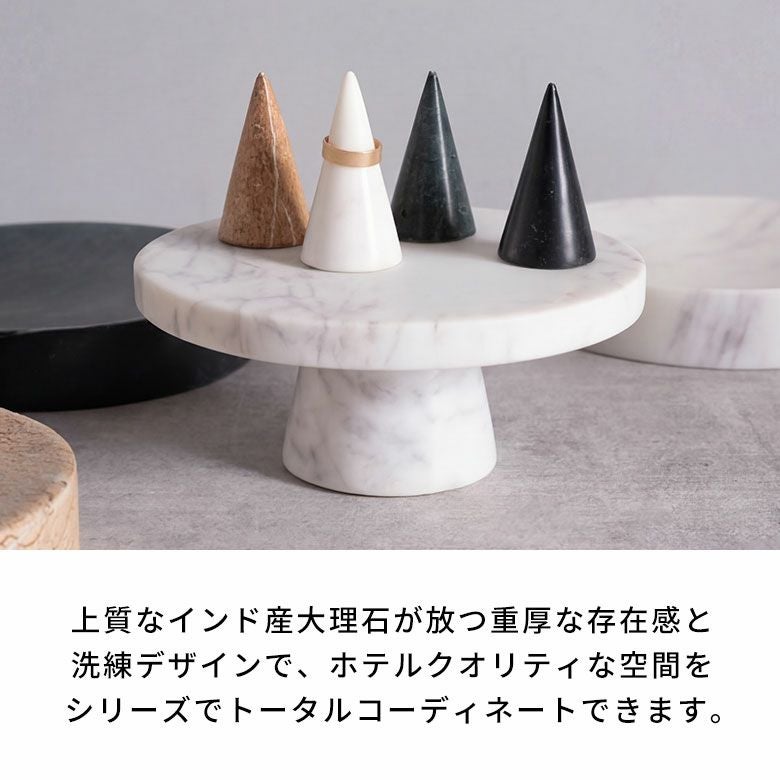 ホワイトやブラックの大理石がモノトーンコーデと調和しアクセサリーを飾るオブジェとしても活躍。