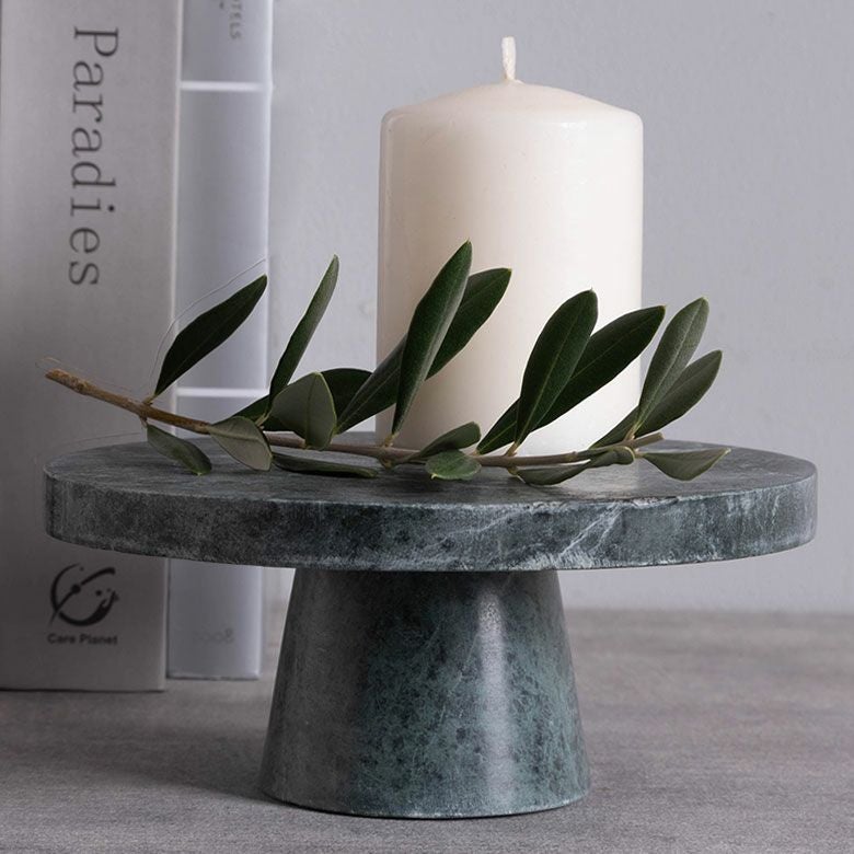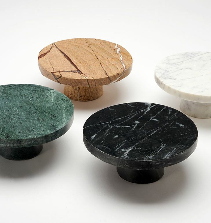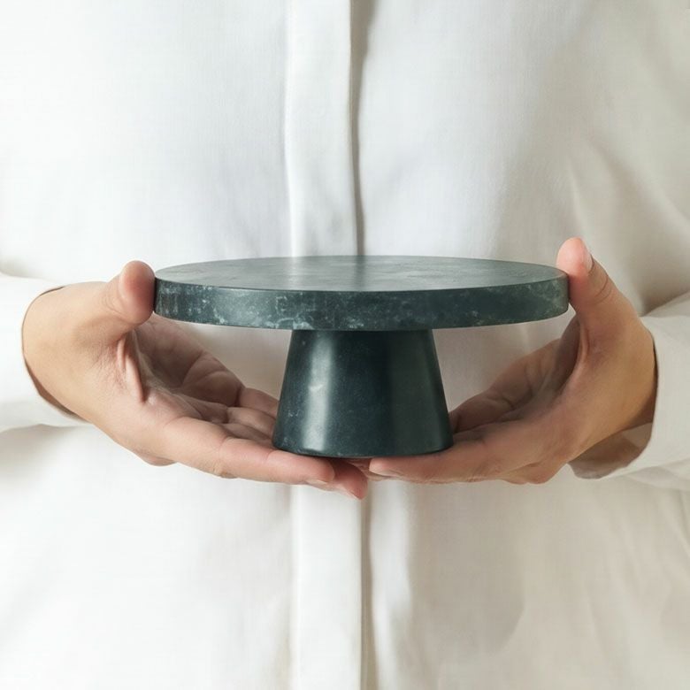 カラーバリエーションはブラック・ホワイト・グリーン・ブラウンの全4色。天然石ならではの豊かな表情を楽しめるコンポートトレイは、置くための器であると同時に、空間を格上げする小さなインテリアオブジェです。