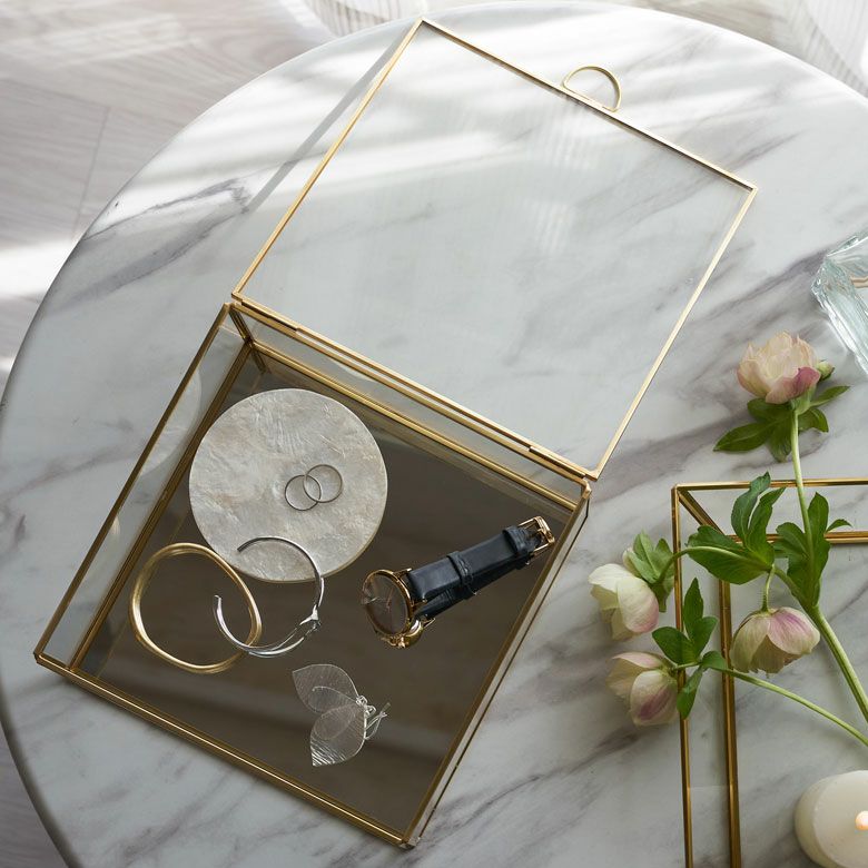 落ち着いたゴールドの真鍮フレームと、ガラスでできた