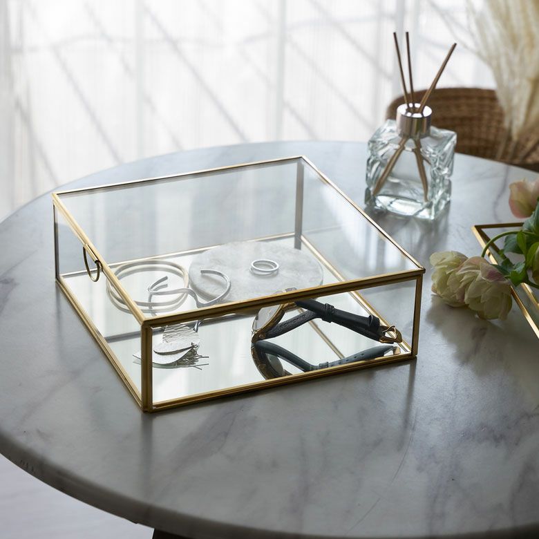 ガラスの透明感とゴールドのフレームが上品な