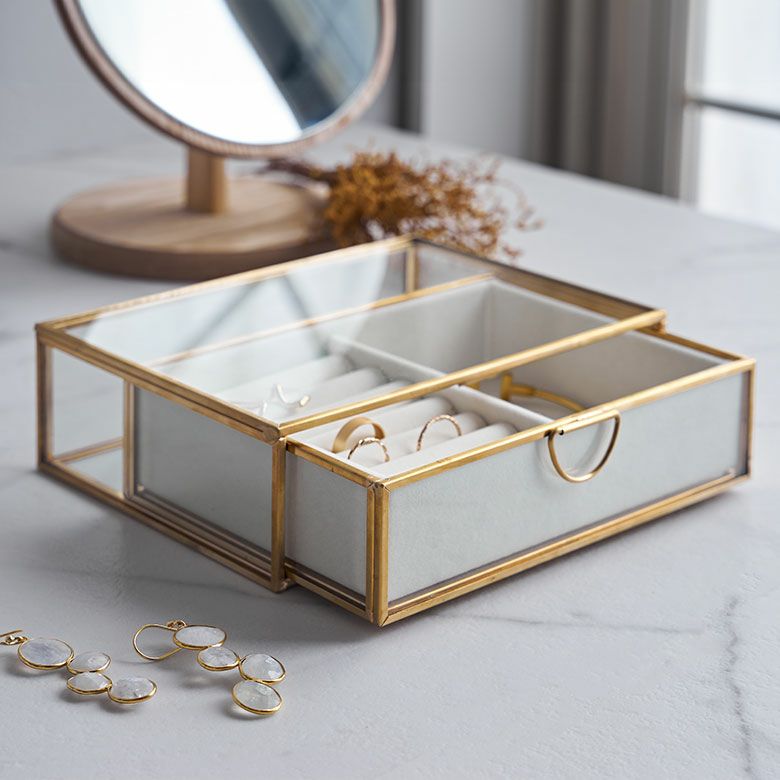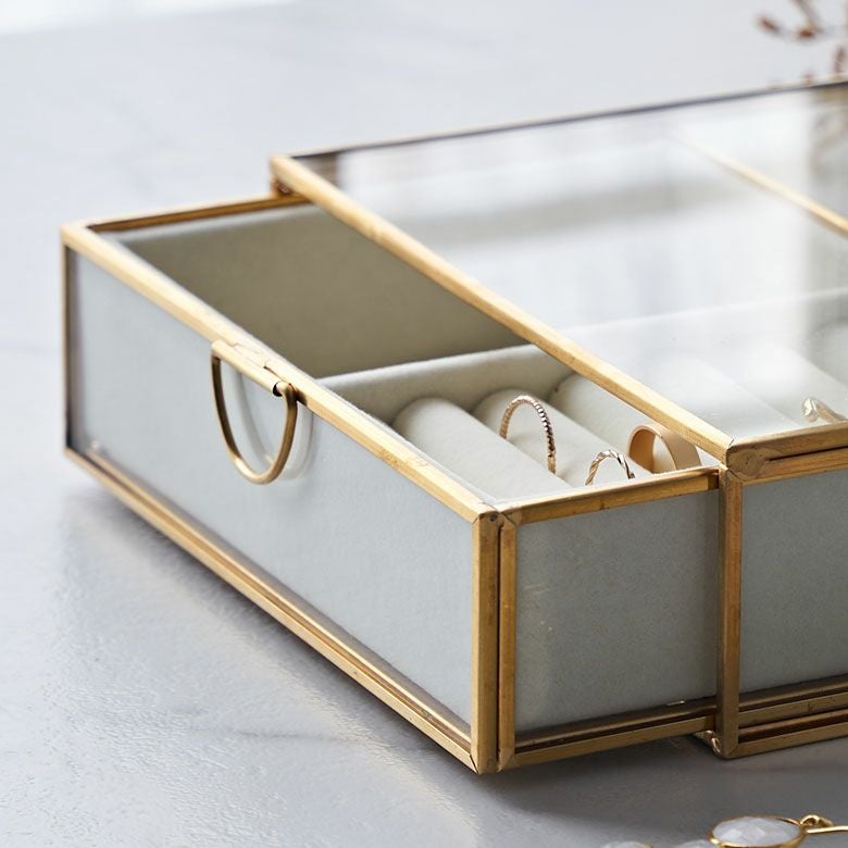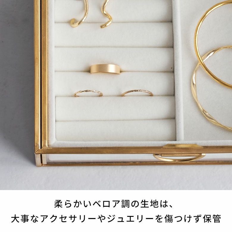 ・ガラスの透明感と真鍮のゴールドのフレームが上品なアクセサリー収納