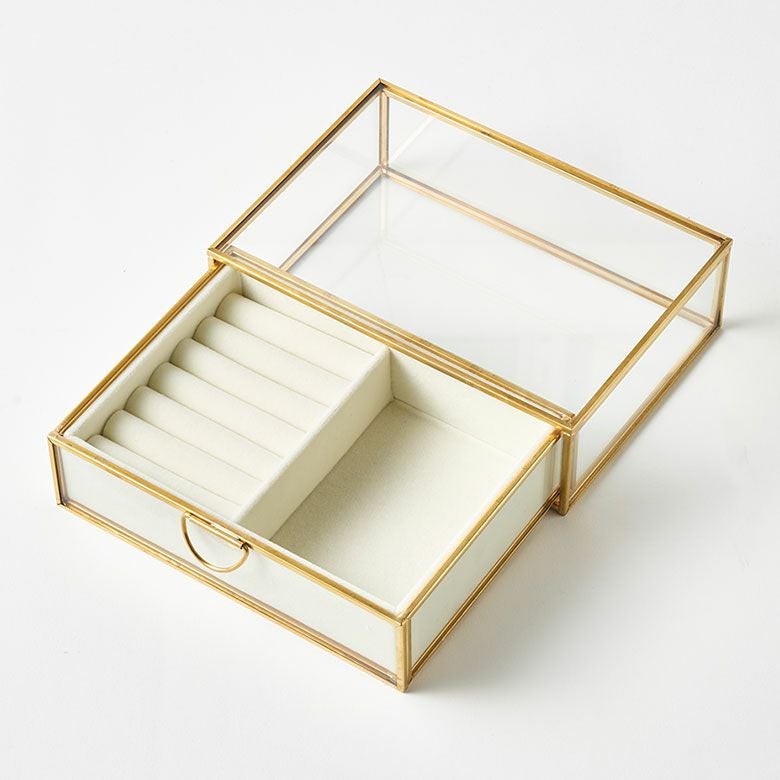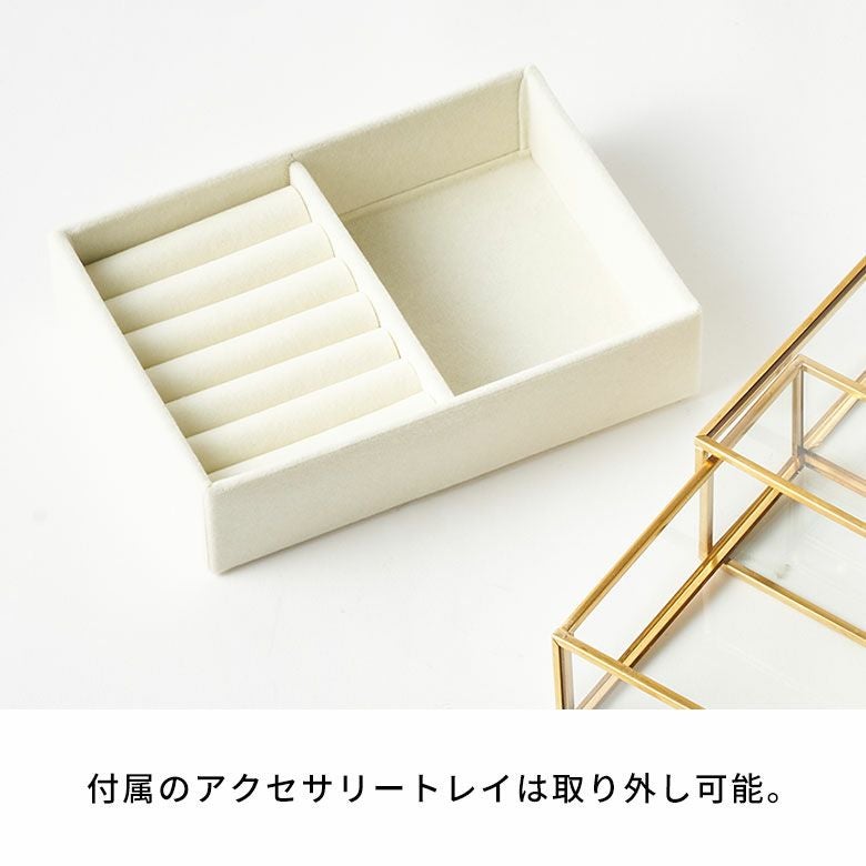 ・ガラスと真鍮シリーズの人気商品・ドロワー型ケースに、ベロア調のインナートレイがプラス