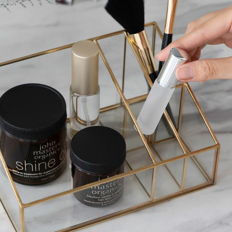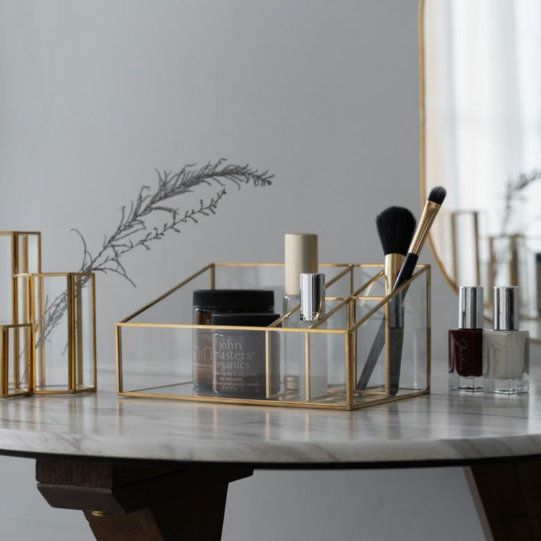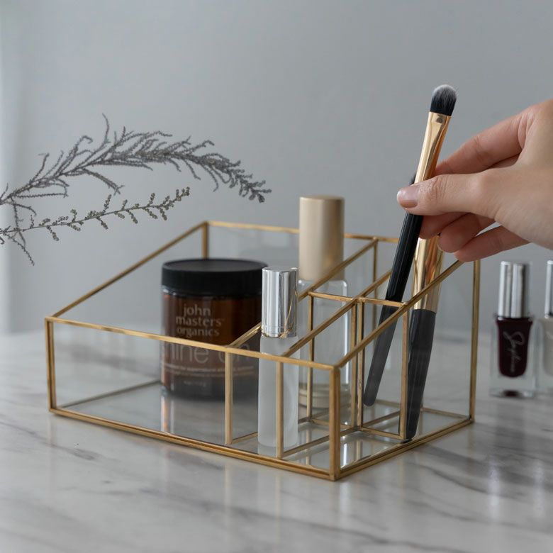 ブラシやアトマイザーなど大きさに合わせて収納できる5分割タイプ。