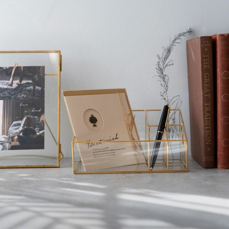 落ち着いたゴールドの真鍮フレームと、ガラスでできた