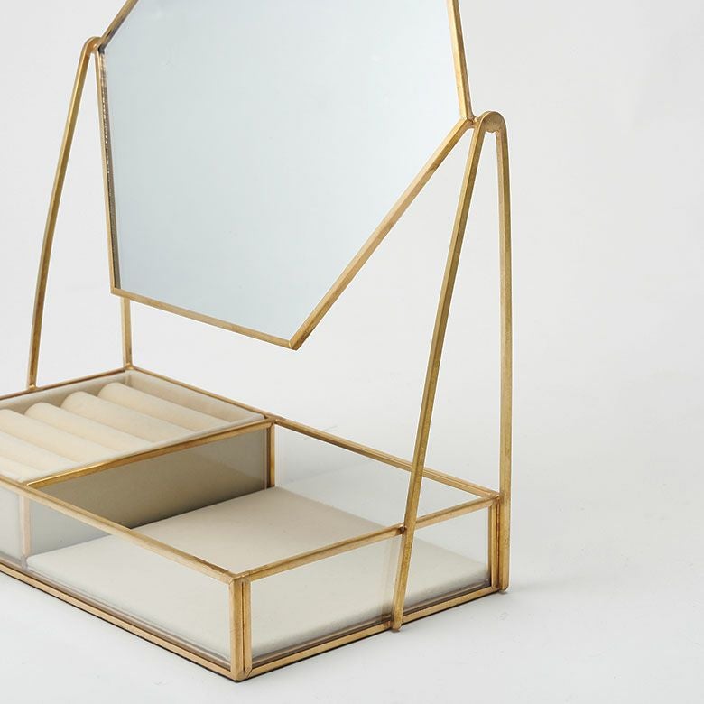収納部分の上品なクリーム色がゴールドの細身のフレームとマッチし