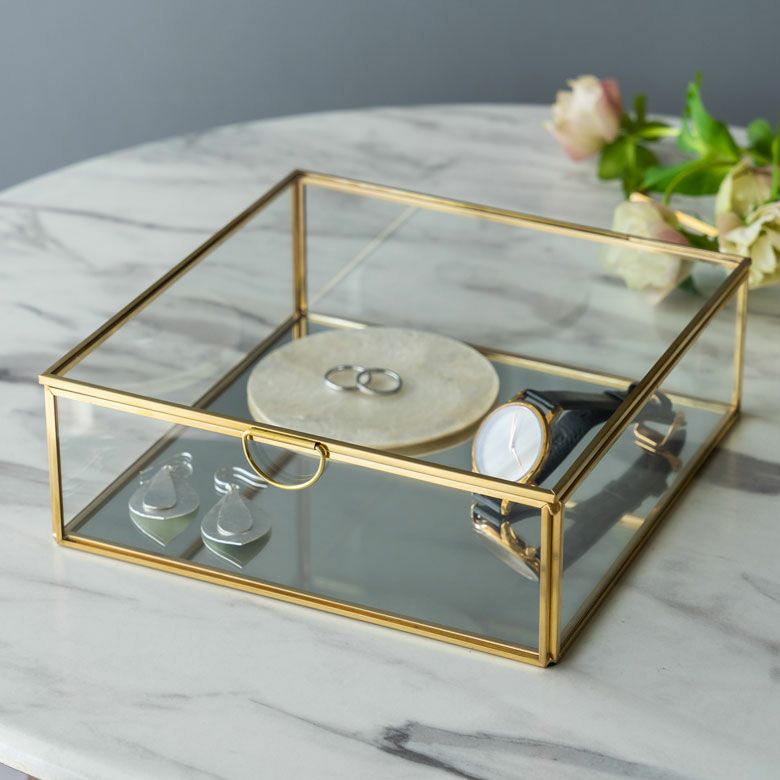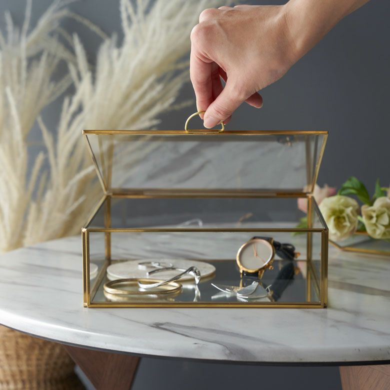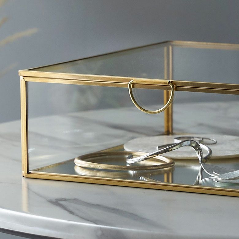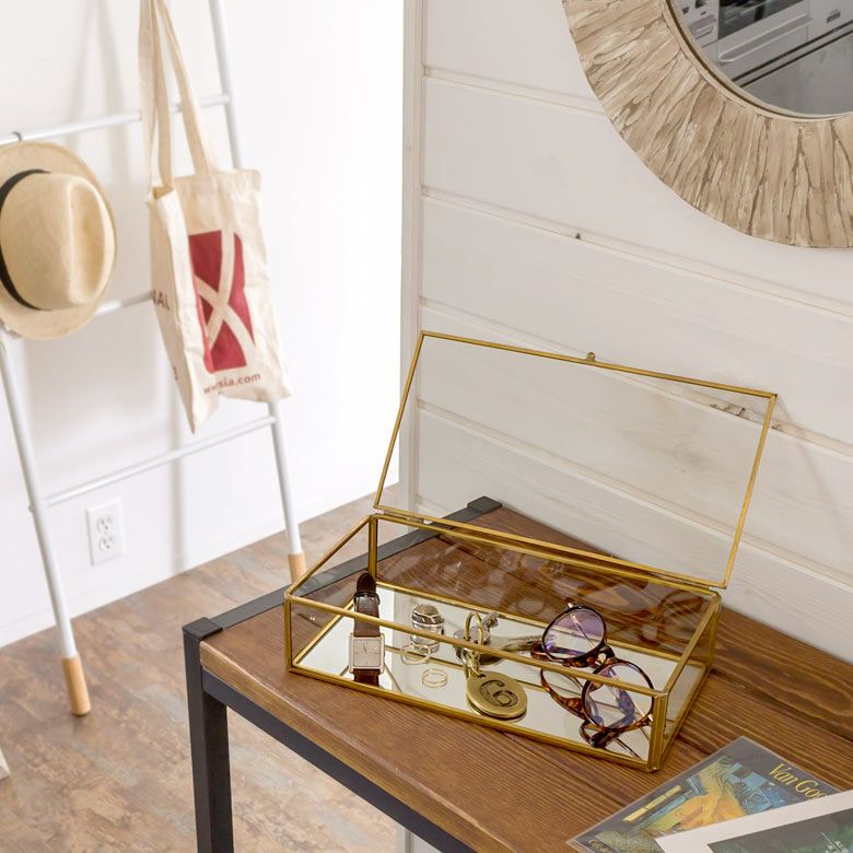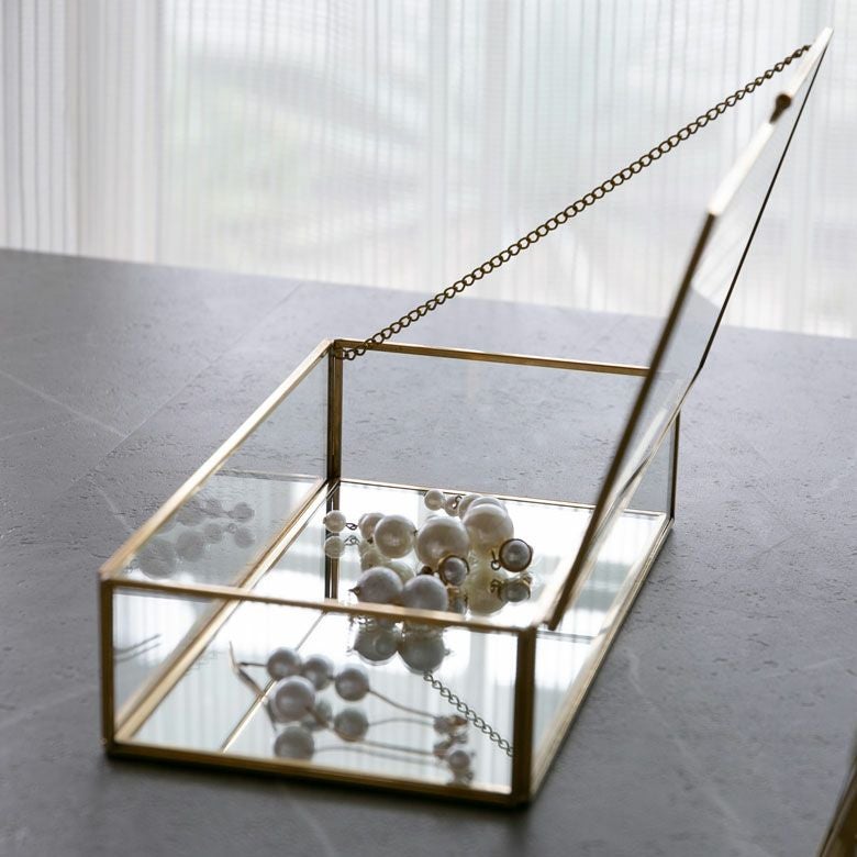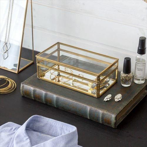 アクセサリーケース ディスプレイ 小物入れ ゴールド リゾート ガラスと真鍮でできたジュエリーボックス(63280) 【ガラスボックス おしゃれ ガラスケース アクセサリーケース ジュエリーボックス アクセサリー入れ 四角 コレクション ゴールド ディスプレイケース 小物入れ 小物収納 インテリア アジアン雑貨】